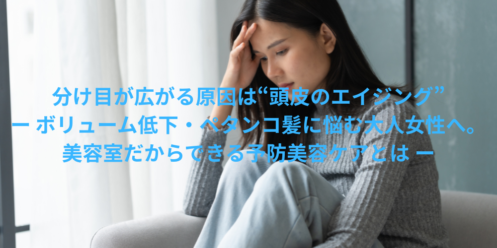 分け目が広がる原因は“頭皮のエイジング”ー ボリューム低下・ペタンコ髪に悩む大人女性へ。美容室だからできる予防美容ケアとは ー